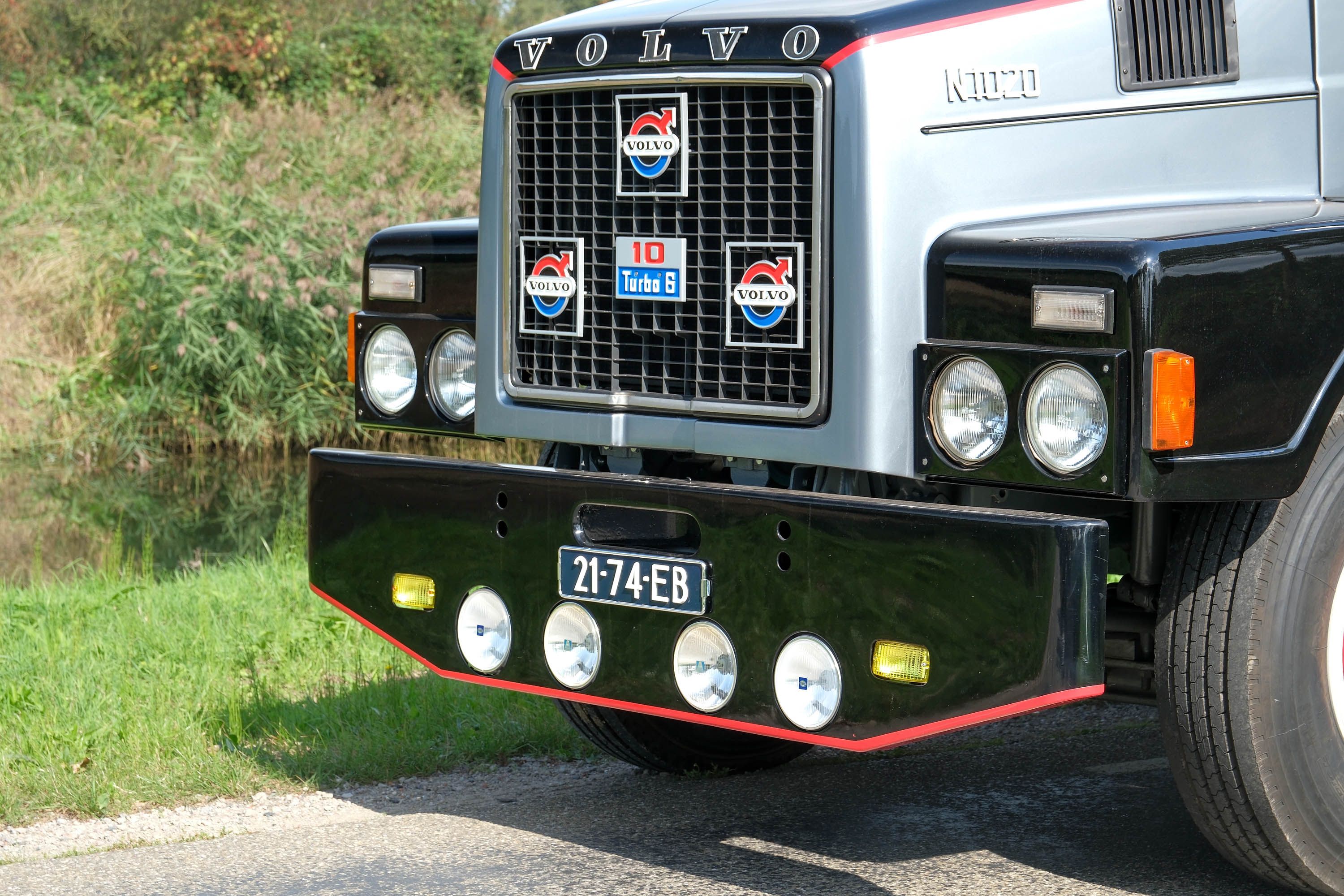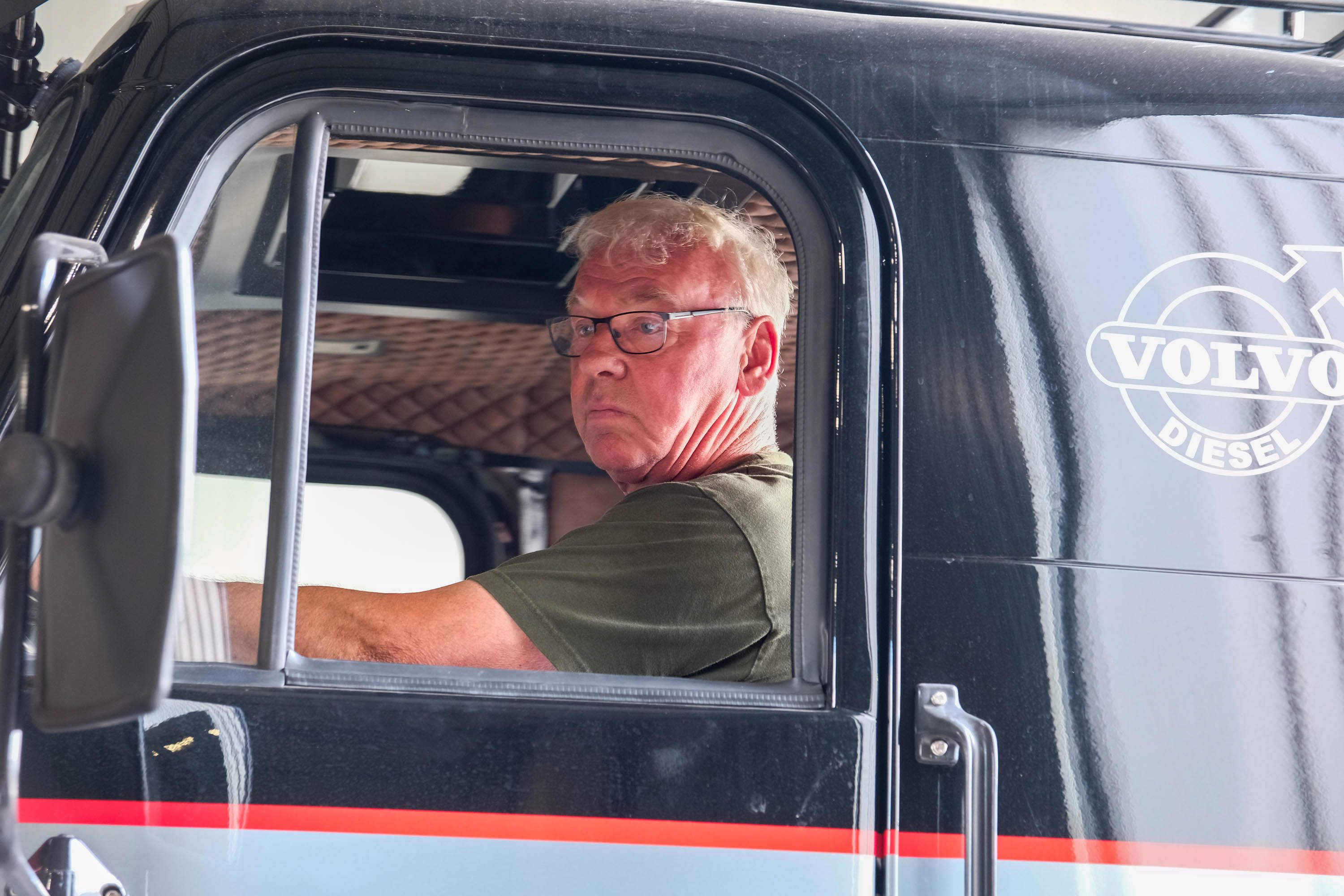 Met deze informatie gewapend gaan we op de trekker af, die in hun loods staat. Jan start de motor en als de luchtdruk voldoende is, rijdt hij hem voorzichtig naar buiten. “Neem maar mee, ik moet nu weer aan het werk, ga maar foto’s maken en als je klaar bent, zien we je wel weer.” De foto’s zijn her en der in de buurt gemaakt en de Volvo kreeg nog volop belangstelling van de schooljeugd, die langs fietste. De telefoons werden tevoorschijn gehaald om foto’s van de mooie trekker te maken. “Mogen we even er in kijken, meneer?” Zoiets kan en mag je de toekomstige chauffeurs natuurlijk niet weigeren en de jongens vonden het prachtig. De trekker rijdt overigens, zoals een vrachtwagen uit 1975 het hoort te doen. Het is een stuk luidruchtiger in de cabine dan we tegenwoordig gewend zijn, de handgeschakelde 16-bak laat zich echter makkelijk en licht bedienen, het uitzicht is niet slecht en erg handig bij het manoeuvreren zijn de ruiten achter in de cabine. Met zijn 260 PK en 16 versnellingen kom je nog goed mee in het verkeer. Zittend op een comfortabele Bostrom stoel. Niks mis mee, het veercomfort is een ander verhaal, met zijn dikke trapezium veren is het niet de soepelste, maar wat wil je, deze Volvo is ontworpen voor de zwaarste transporttaken, hij zal ongetwijfeld soepeler rijden met een oplegger op de koppelschotel. Na het maken van de foto’s wordt de Volvo door Jan weer op stal gezet en stopt het bezoek, want hij moet verder met zijn werk. Altijd druk die man.