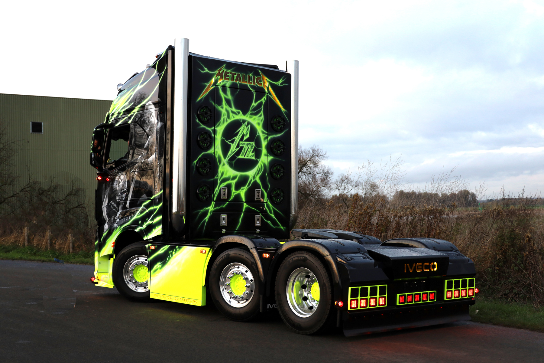 Iveco had voor de Europese Metallica M72 tournee een samenwerking voor het verduurzamen van de logistiek. Dat is nogal een opgave, want in totaal reden er maar liefst 92 trucks door heel Europa voor de band. Veertien daarvan werden geleverd door Iveco, op HVO en op Bio LNG. Daarnaast werden de bandleden vervoerd met elektrische Iveco Daily busjes. De mooiste en dikste Metallica Iveco reed echter niet mee. Die was pas klaar na de tournee.