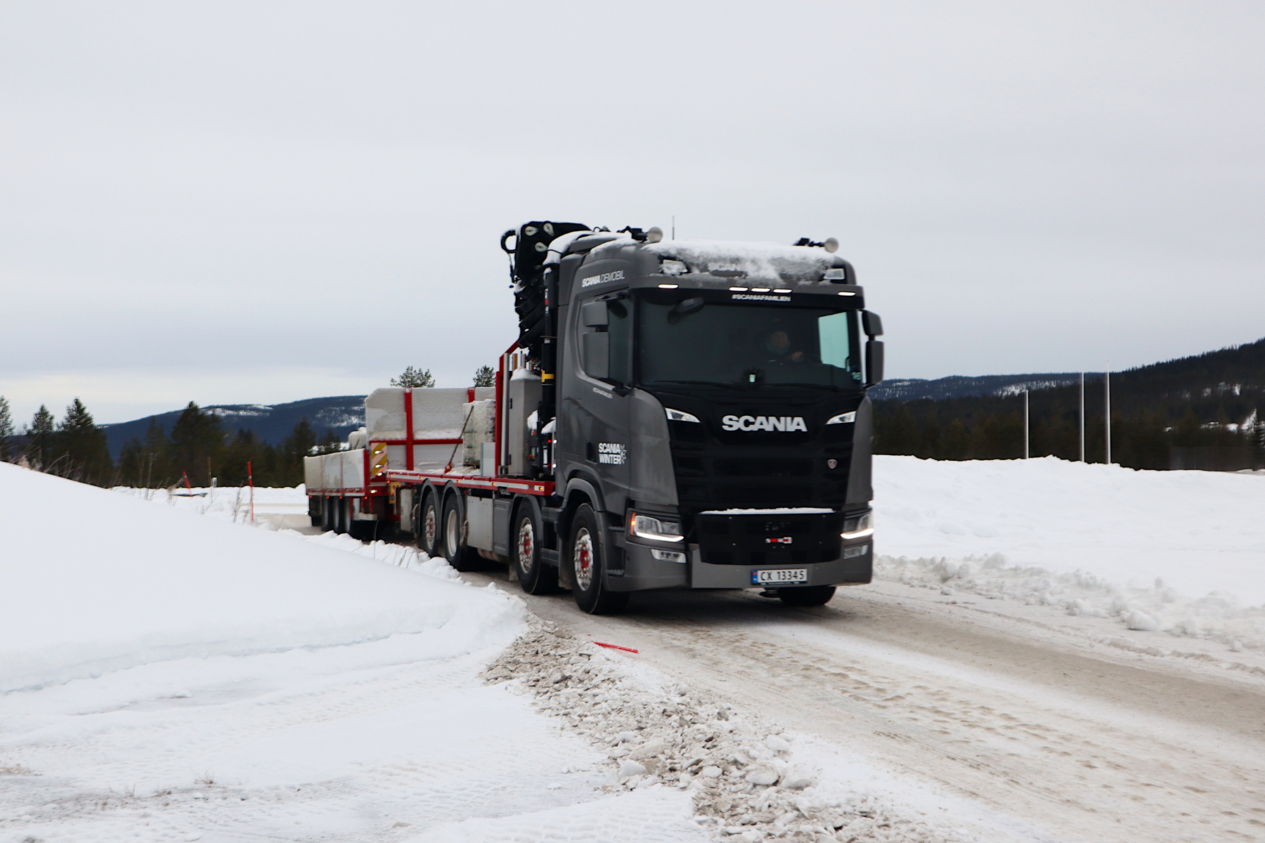 Al talloze jaren nodigt Scania pers en klanten uit voor een uniek evenement in Noorwegen. Op en rond een vliegveld in wintersportplaats Trysil mogen zij in winterse omstandigheden met de nieuwste Scania’s in allerlei configuraties rijden. Dit jaar lag er aanzienlijk minder sneeuw dan voorgaande jaren, maar toch is de wereld er behoorlijk wit. De temperatuur die rond het vriespunt schommelt, maakt het bovendien erg glad. Bijzondere omstandigheden dus om met vrachtwagens op pad te gaan.