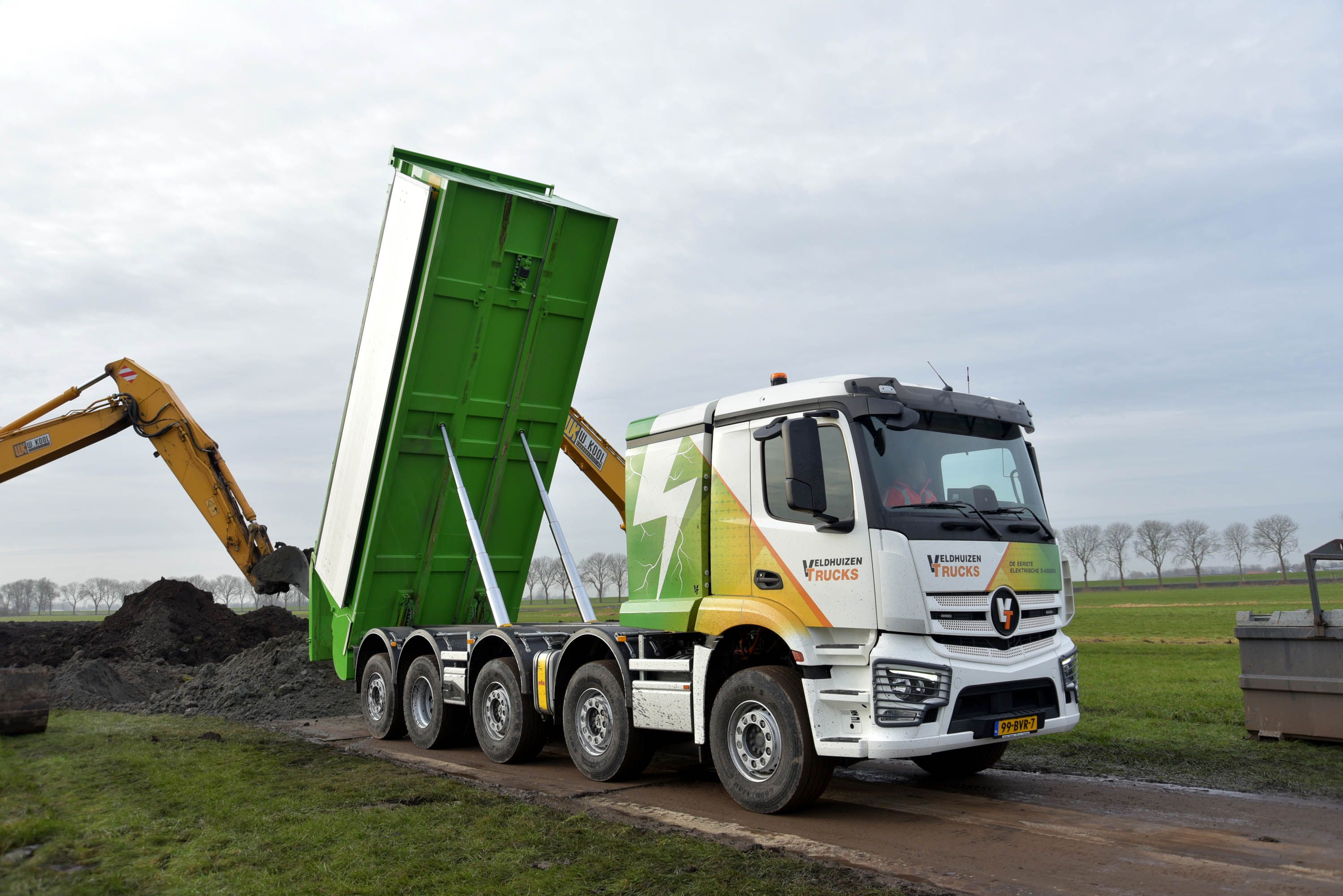 De grootste vraag naar zware, elektrische trucks komt vanuit de bouw- en wegenbouwsector. Steeds vaker worden zij geconfronteerd met aanbestedingen waarin zero-emissievoertuigen verplicht zijn. De grote merken leveren vooral elektrische trekkers en bakwagens met relatief lage laadvermogens, en daar zag Veldhuizen Trucks mogelijkheden. Bovendien zijn trekkers met een kipper oplegger niet handig in het asfalttransport, aangezien daar vaak langdurig achteruit gereden moet worden. Kortom, Veldhuizen Trucks zag een gat in de markt voor een elektrische 10x2 kipper met een hoog laadvermogen.