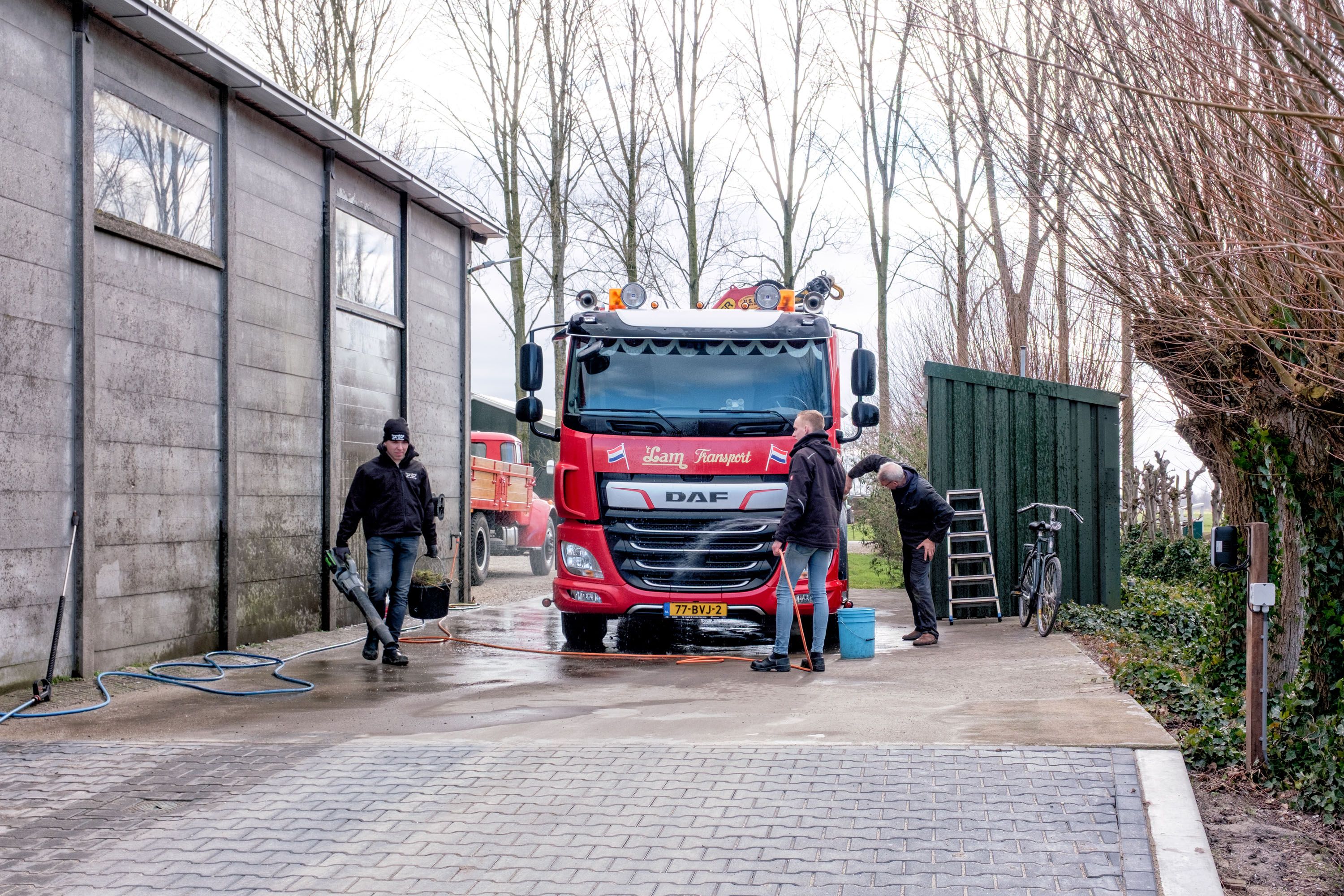 Het is altijd leuk om te zien, dat dergelijk, inmiddels historisch, materiaal gewaardeerd wordt. Na het maken van een aantal foto’s en een laatste kop koffie, nemen we afscheid van elkaar. Gerrit gaat nog even met zijn been omhoog zitten, want de inspanningen zijn best nog zwaar voor hem, zijn broer Bert, die net terugkomt van een bijzonder transport met een motorboot zonder motor, gaat zijn DAF CF wassen, geholpen door de beide neefjes. Want het zal niet gebeuren, dat je op maandag een vieze auto van Gebr. ’t Lam tegenkomt op de weg. Dat is hun eer te na.