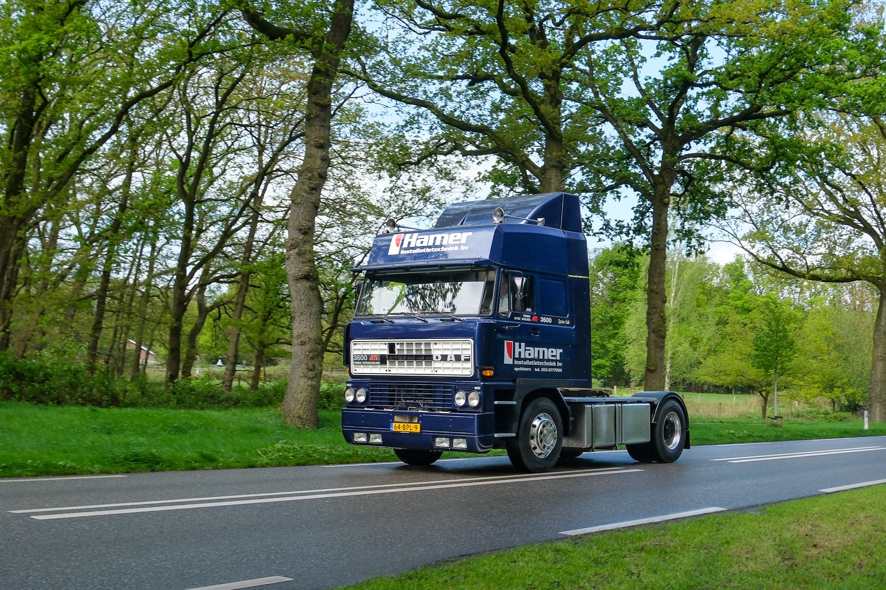 Emiel steekt van wal: “Toen de DAF SpaceCab uitkwam, was dat voor mij helemaal het einde, wat een kar had DAF gecreëerd! Wist je overigens, dat Rutger Hauer, de acteur uit o.a. Turks Fruit, aan de basis van de SpaceCab stond? Die had namelijk een DAF 2800 om zijn woontrailer te trekken en vond de cabine te klein. Dat had hij in Amerika wel anders gezien en hij liet een hoog dak op zijn 2800 maken door Visser Carrosseriebouw in Drachten. Met die DAF bezocht hij ooit de fabriek in Eindhoven, en de SpaceCab van DAF is daar dan ook min of meer van afgeleid. Die unieke DAF bestaat helaas niet meer, maar zijn opvolger, de af-fabriek SpaceCab die Rutger Hauer later aanschafte bestaat nog steeds en was ook aanwezig tijdens het evenement. Naarmate ik ouder werd, interesseerde ik mij meer in de historie van deze serie van DAF. Bij het bezoeken van oldtimer evenementen, viel het mij op, hoe weinig er eigenlijk nog maar over zijn van dit type. Niet omdat ze allemaal naar de Hoogovens zijn gebracht, integendeel zelfs, er zijn ontzettend veel van geëxporteerd, nadat ze hier hun taken hadden volbracht. In Afrika en ook Suriname kun je ze nog tegenkomen hoor, gewoon als werkpaard.”