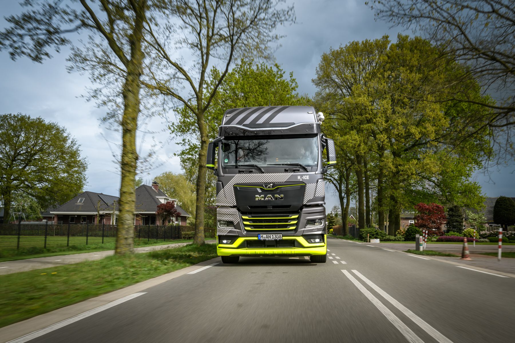 Dat de motor zoveel op een diesel lijkt, verklaart de relatief korte ontwikkeltijd van vijf jaar. De voordelen voor MAN zijn duidelijk. Aan de motor is een normale versnellingsbak gekoppeld. Ook de koeling en de rest van de aandrijflijn zijn hetzelfde als bij een diesel. Feitelijk is dit gewoon de MAN TGX zoals we hem kennen, maar dan op waterstof. Het grootste verschil zijn de enorme tanks achter de cabine: deze pasten niet aan het chassis. Er komen overigens nog fraaie fenders voor, die nog niet klaar waren voor de presentatie.