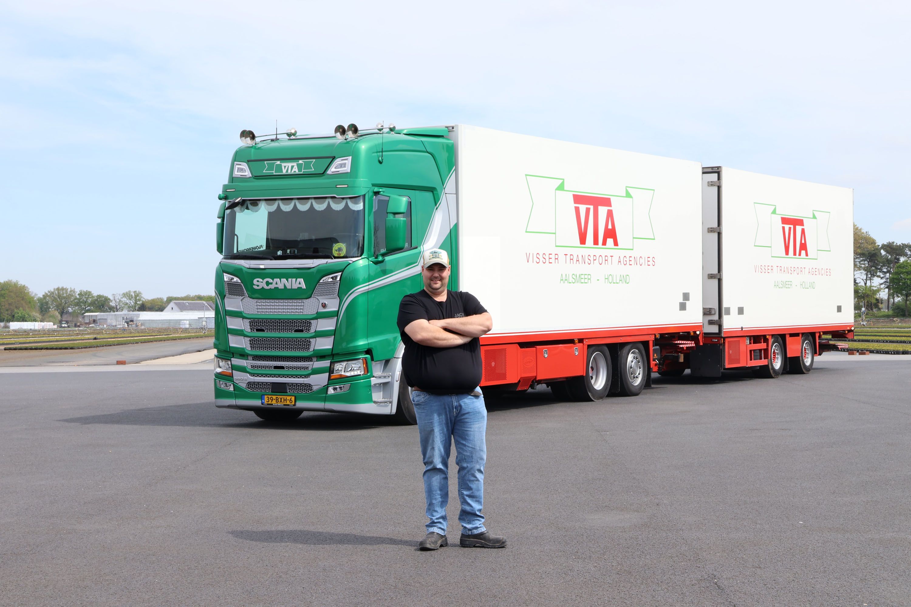 Dat was in 2018, toen zijn we begonnen bij VTA, oftewel Visser Transport Agencies in Aalsmeer. We zijn begonnen met een trekker-oplegger, waar we drie jaar mee hebben gereden. We deden soms de weekendrit met een combi en daardoor hebben we ook de kans gekregen om met een combi te leren rijden. Rijden met een combi is niet zo moeilijk, maar zo efficiënt mogelijk laden en lossen met een combi vergt wel wat meer denkwerk dan met een oplegger.