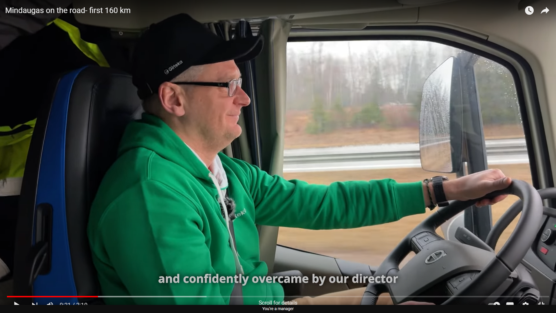 De vraag die Mindaugas zich stelde was waarom jonge mensen geen interesse meer hebben in het vak van vrachtwagenchauffeurs. Zijn het de arbeidsomstandigheden? Of zijn ook onvoldoende parkeergelegenheden en verzorgingsplaatsen daar een oorzaak van? Om uit te zoeken hoe het onderweg gesteld is met de verzorgings- en rustplaatsen trok hij twee weken lang op met een chauffeur van zijn onderneming. Je kunt van Girteka vinden wat je wilt, maar dat zie ik maar weinig transport ondernemers doen. En even voor de beeldvorming, Girteka is met 6000 trucks en 7000 trailers de grootste transporteur van Europa.