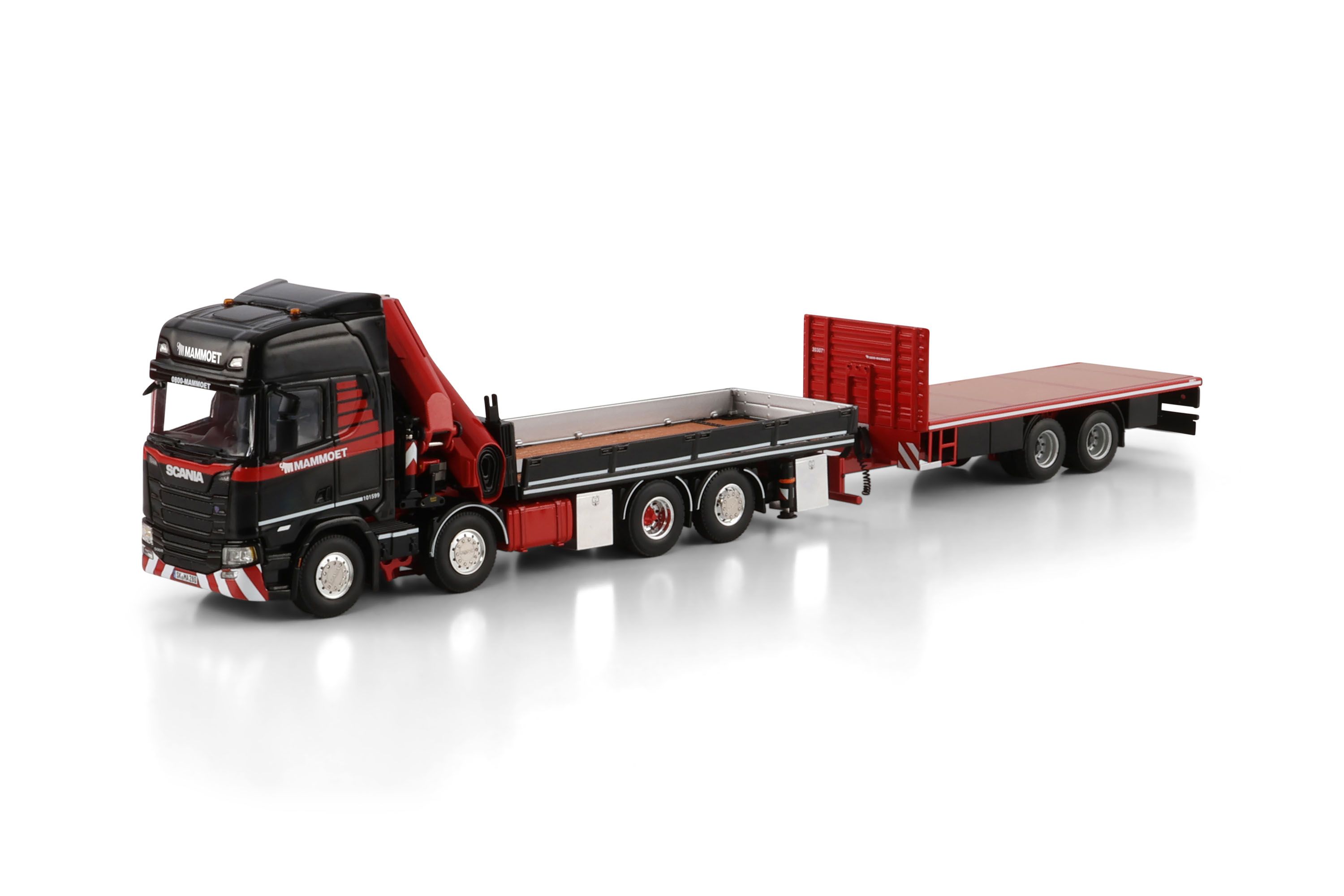 NIEUW: Mammoet Scania R500 V8 8x2 met autolaadkraan en wipkar.
