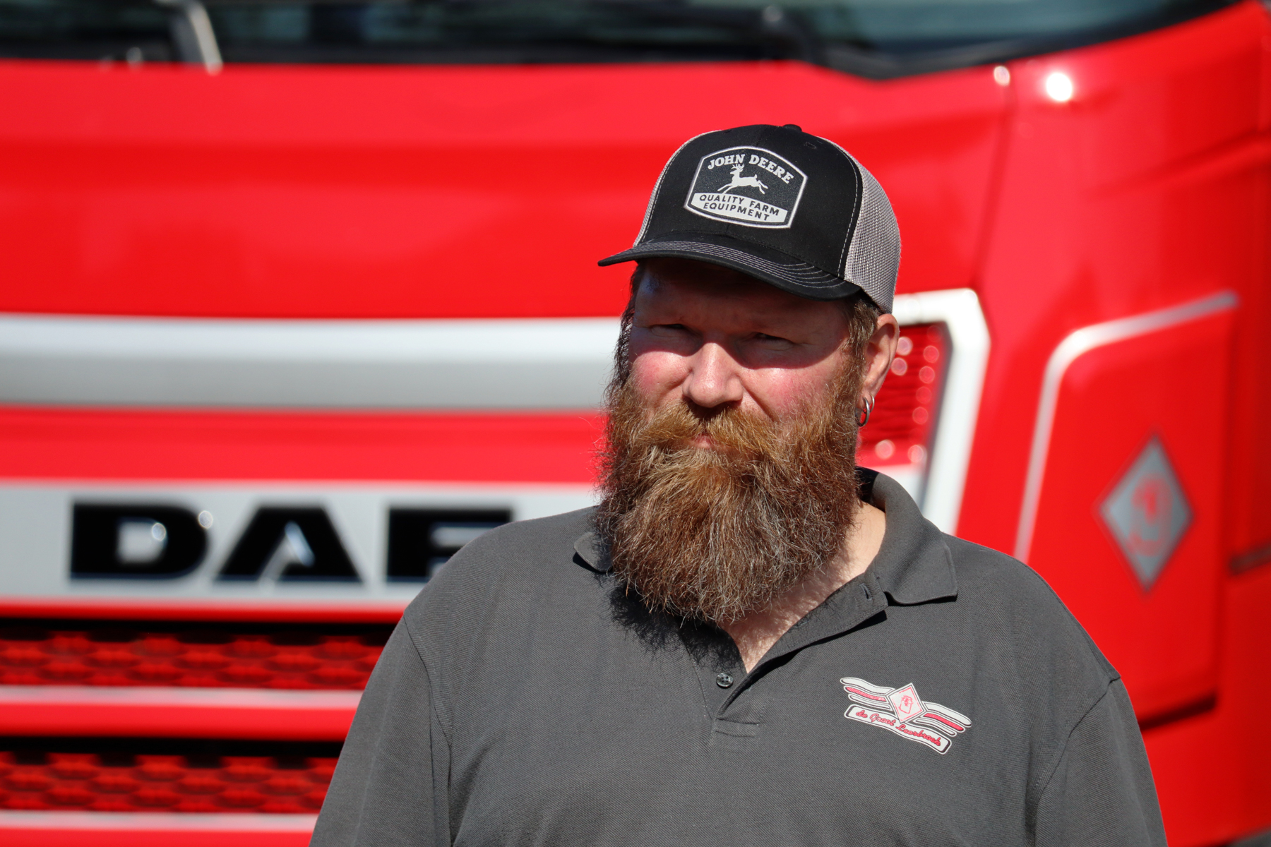 Rick zijn combinatie is een knalrode DAF XG met grijze accenten. Met op het dak een rijtje verstralers en twee luchthoorns en een fraai interieur is dit niet direct het type vrachtauto dat je verwacht in het melktransport. Rick schiet in de lach. “Ik begrijp wat je bedoelt, ja”, zegt hij. “De wielbasis is wat langer. Dat is een uitdaging bij dit werk. Maar deze DAF is gekozen vanwege de uitstraling. Bij De Groot vinden ze een verzorgd wagenpark heel belangrijk.”