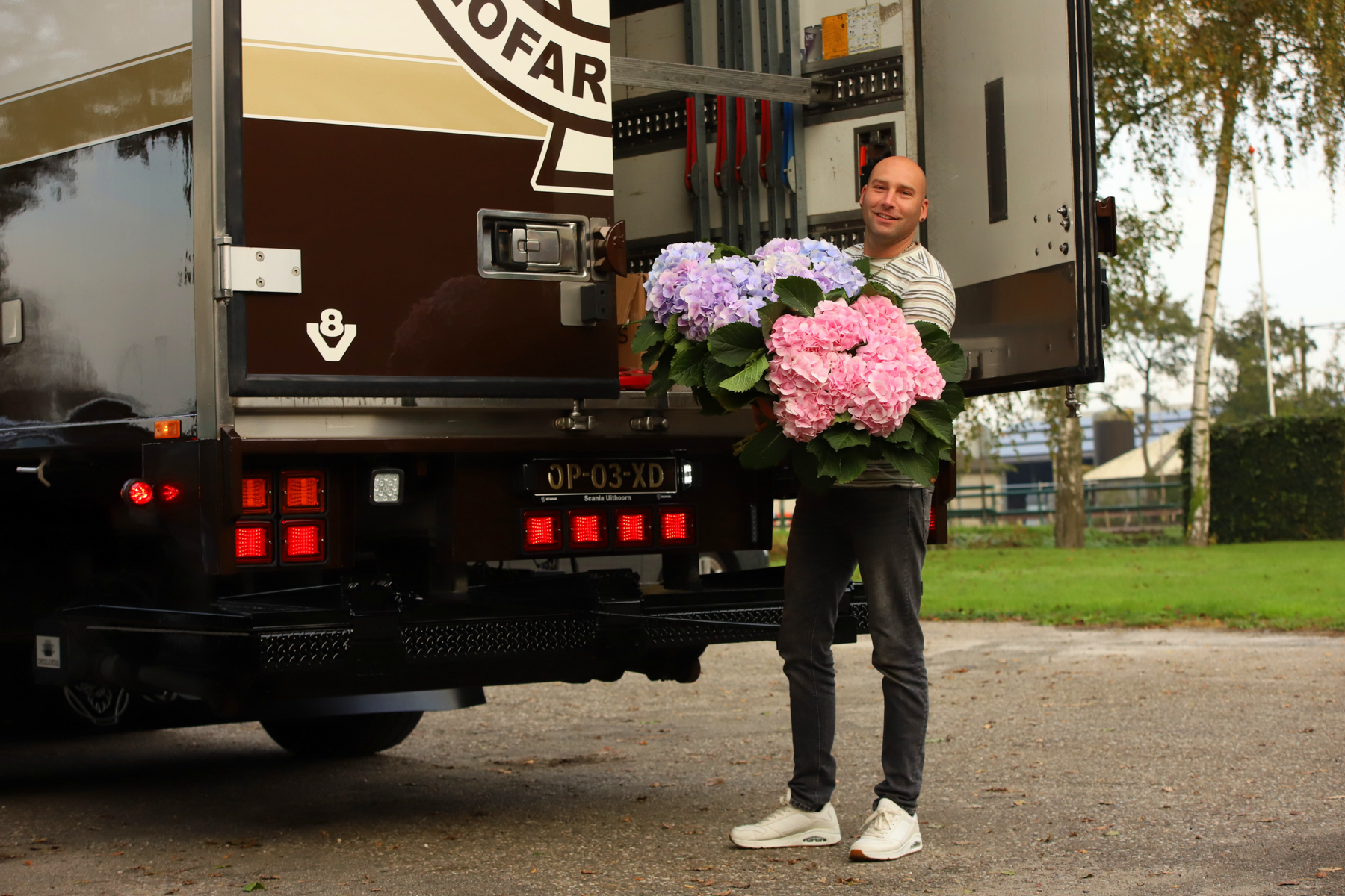 Boudewijn rijdt doordeweeks met bloemen en planten. Maar er staan ook wel eens groentes in de trailer. Fijne betrouwbare opdrachtgevers zorgen ervoor dat hij prima aan het werk kan blijven en dat dit allemaal mogelijk is. Boudewijn hoop met zijn nieuwe aanwinst weer 10 jaar te kunnen doen . Samen met zijn vrouw Michelle die achter hem staat en thuis alles draaiende houd terwijl Boudewijn hard aan het werk is.. En het is voor Boudewijn niet alleen werk maar ook een stuk hobby. “Wel een tijdrovende en prijzige hobby”, zegt hij met een knipoog….!